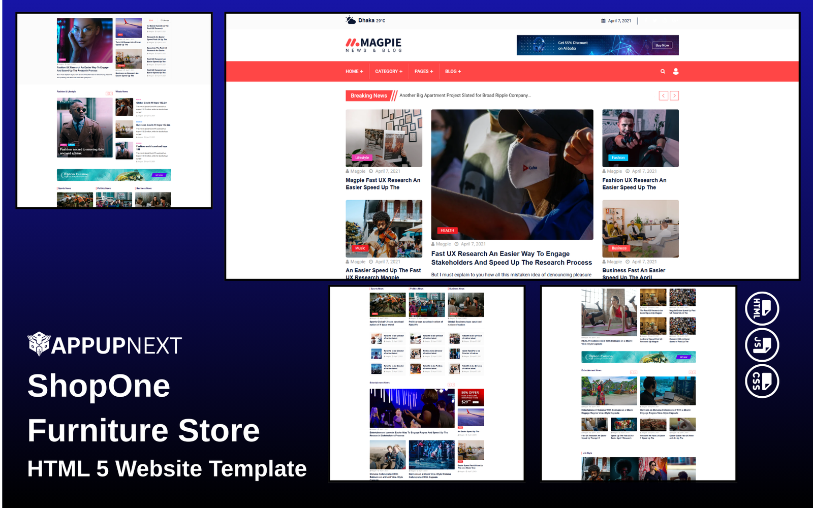 Magpie - Blog, Magazine - HTML 5 Website Template - v7